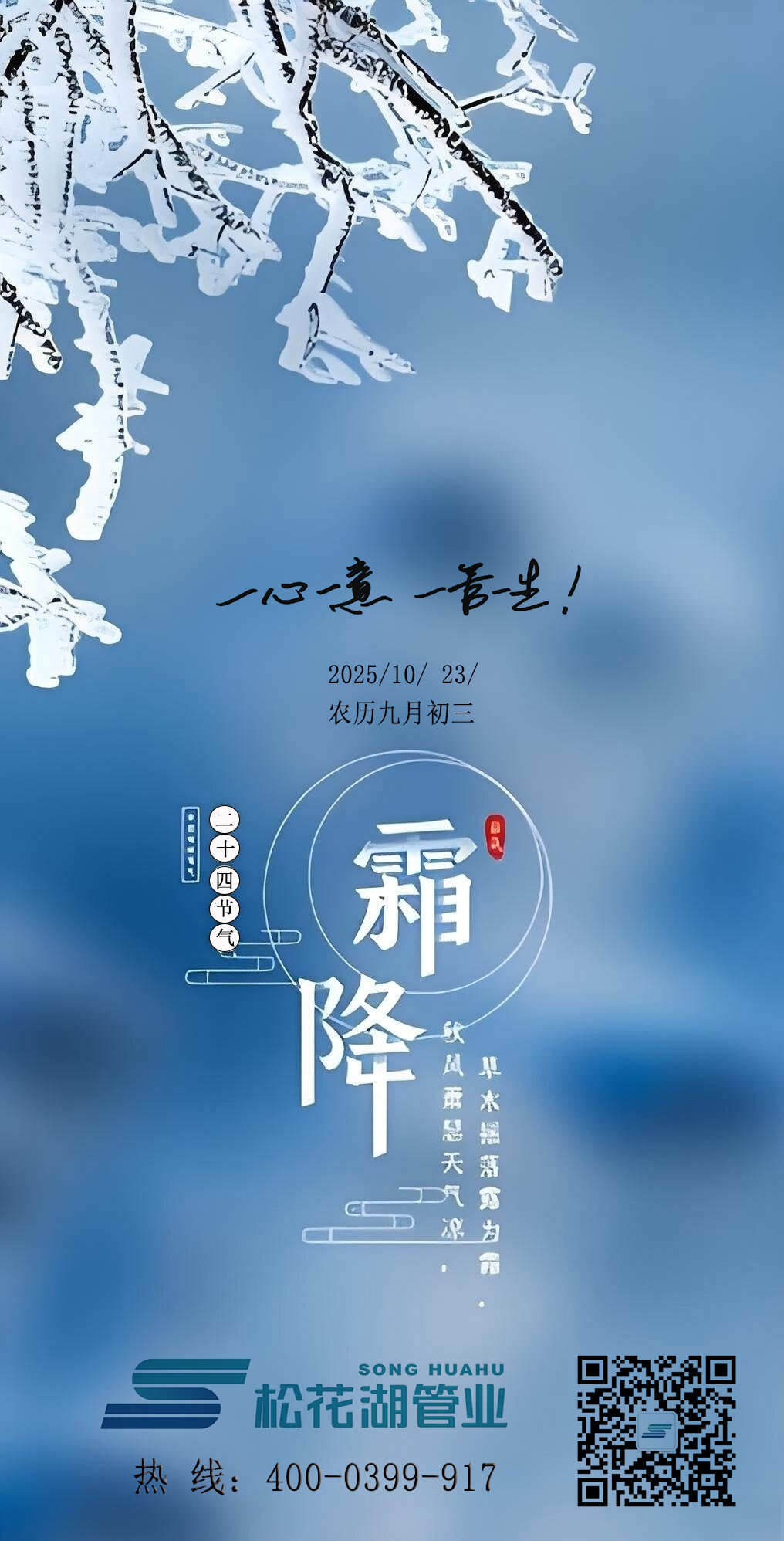 霜花漫染天地,牽掛藏于心底。松花湖管業愿您在這個節氣里,食有暖味,居有溫巢,行有暖陽。伴您從容度秋暮,靜候冬安來,霜降安康!